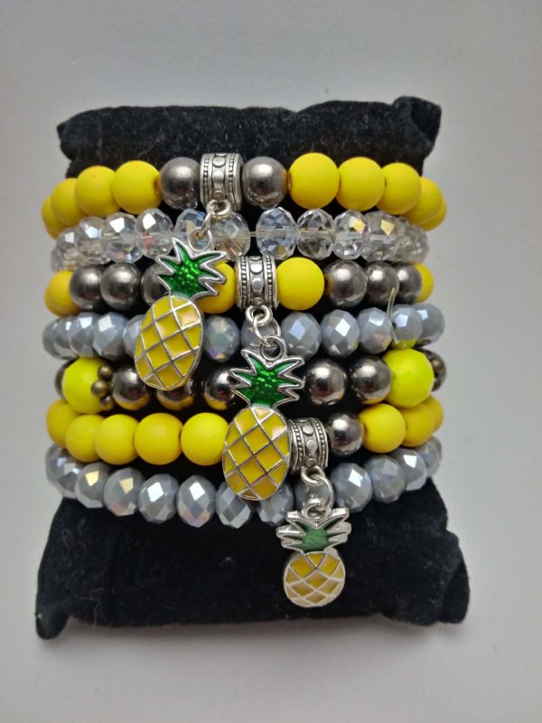 Mais mix de pulseiras que contam uma história, através de um elemento como Abacaxi, Coruja ou Onça, de um material como as sementes, ou através de uma cor ou duas predominantes. O ideal é contar uma história com uniformidade nesses casos, com um tema específico. Ao deixar claro o tema do seu mix de pulseiras, fica muito mais fácil na escolha da composição.