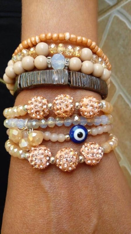A parte importante do pulseirismo é misturar suas pulseiras que contam uma história, e trazem uniformidade ao conjunto. Vale também adicionar pulseiras junto a relógios e braceletes, desde que juntos eles combinem entre si.